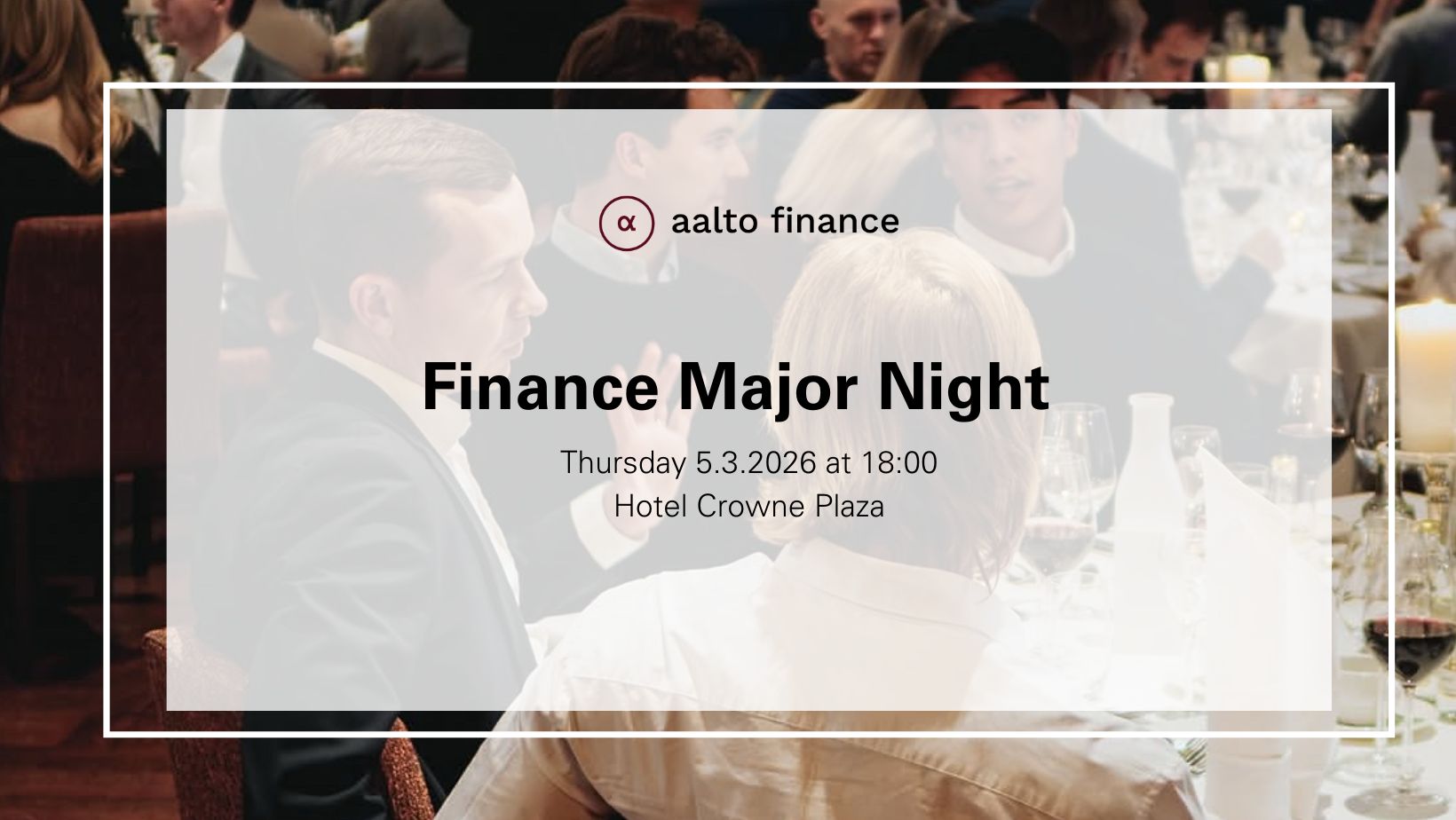 During the evening representatives from Aalto Finance, the Faculty of Finance, Nordea, and McKinsey will introduce themselves and share their personal experiences and thoughts on studying finance. The formal part of the event will be held in Finnish. However, you will have the opportunity to ask Aalto Finance, the Faculty, and corporate representatives anything concerning finance as a major in English while enjoying a light dinner.