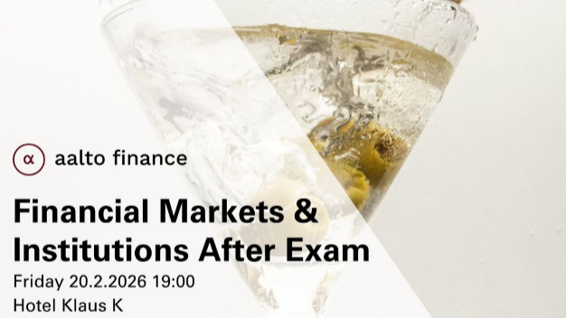 Aalto Finance & Nordea invite you to celebrate the completion of your Financial Markets & Institutions course! This event is open to those who have attended either Financial Markets and Institutions or Fundamentals of Financial Markets and Institutions course. Don't miss this opportunity to connect, unwind, and celebrate your achievements with fellow finance minded students, and the course professor - Vesa Puttonen.